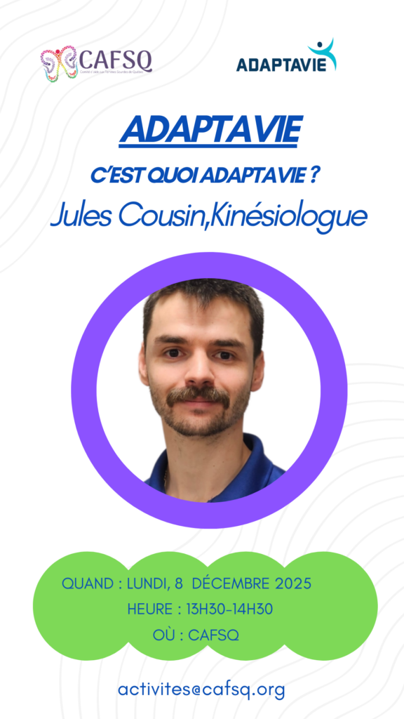 Comité d’aide aux femmes Sourdes de Québec (CAFSQ) 6780, 1ère avenue, suite 150